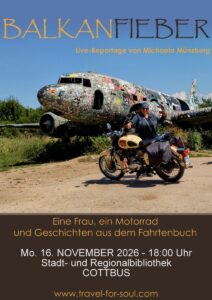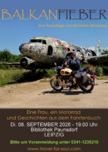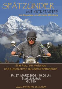 „Liebe Michi, ich habe fast keinen Vortrag verpasst und bin immer wieder begeistert von deinen Reiseberichten und den phantastischen Bildern! Durch deine offene Art und deine Neugierde hast du schnell Kontakt zu den Menschen im Land, konntest viele Freundschaften schließen und erlebst Sachen, die wir Pauschaltouristen nie erleben werden. Kaum eine deiner Reisen verläuft nach Plan, du meisterst jede Hürde mit einem Lächeln und wenn du davon berichtest, sind wir am Staunen, Kopfschütteln und Schmunzeln. Mit deiner frischen emotionalen Art begeisterst du deine Zuhörer jedes Mal aufs Neue! Man könnte dir stundenlang zuhören!“ Ines W., Wilthen