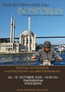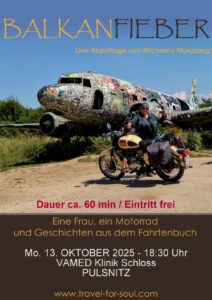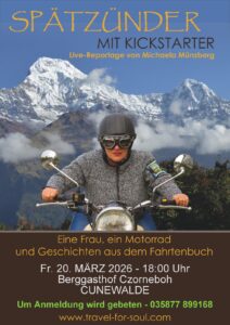 Mittlerweile bin ich freiberuflich als Vortragsreferentin tätig und habe deutschlandweit weit über 400 Live-Reportagen in den verschiedensten Institutionen gehalten, sowohl vor 3 Gästen in einer kleinen privaten Runde als auch vor 650 Zuschauern im Seniorenkolleg an der TU Chemnitz.