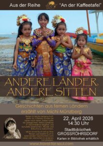 Sehr gerne komme ich auch zu euch, egal ob Kulturhaus, Verein oder Bibliothek, ob Schulklasse oder einfach eine nette Nachbarschaftsrunde.